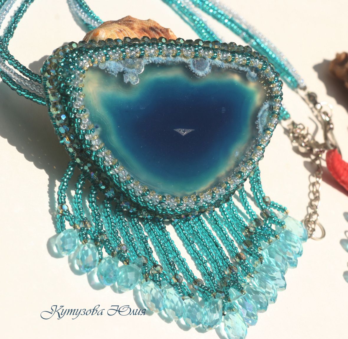 Кулон "Лагуна" Материаллы: срез агата,чешский и японский бисер,чешские бусины