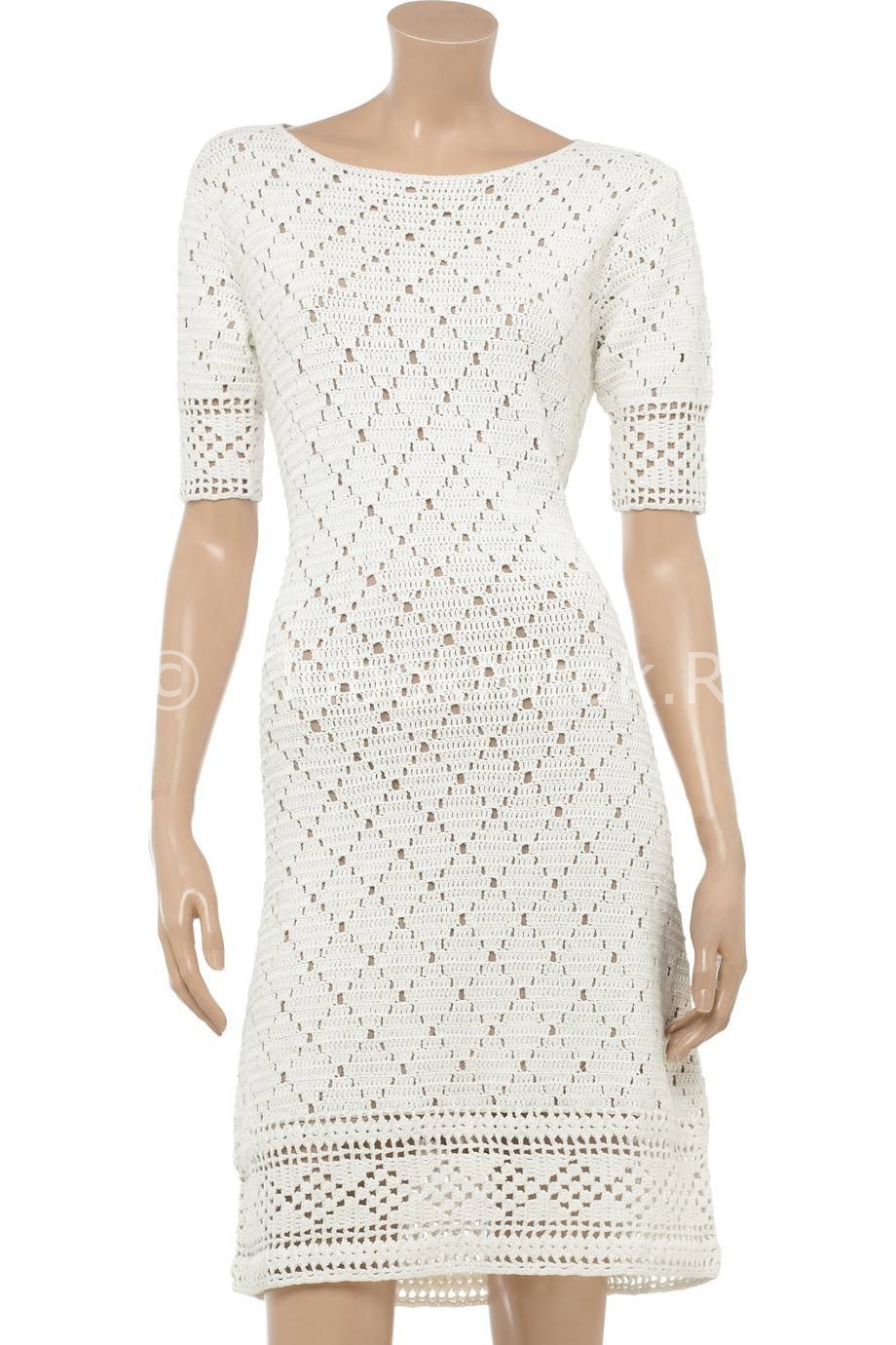 Филейное платье с бордюром | Вязание для женщин | Вязание спицами и крючком. Схемы вязания.
