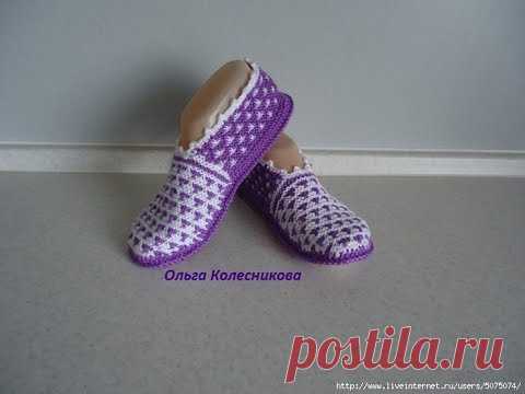 Вязаные тапочки. Мастер-класс. Knitted slippers. Tutorial.