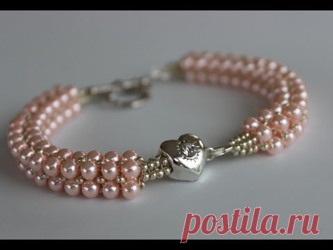 Beaded Bracelet with glass pearls and metal bead Браслет из жемчуга и металлическим камнем