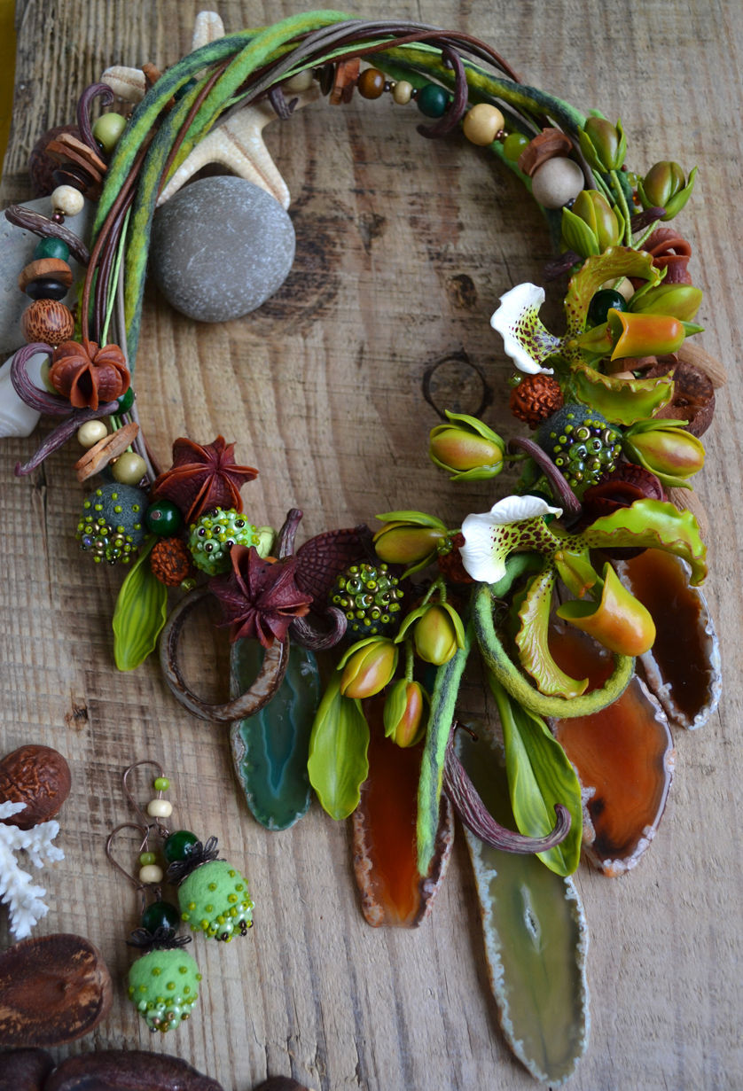 Купить Комплект "Путешествие на Борнео" РЕЗЕРВ - оливковый, орхидея, орхидея из глины, тропики, тропические цветы