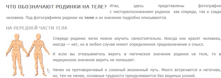 Родинки на теле: значение и схемы расположения