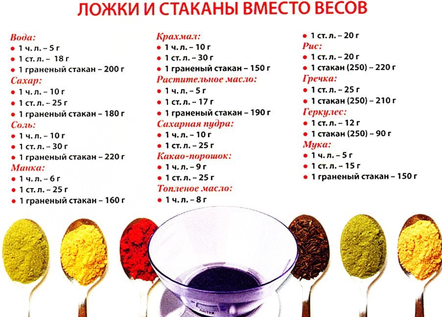 ВМЕСТО ВЕСОВ !!! **На помощь - ложки и стаканы.