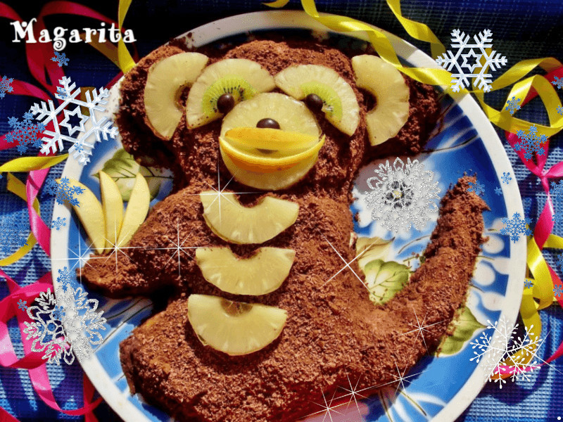 ОБЕЗЬЯНКА ШОКОЛАДНАЯ !!! **Шоколад/печенье 600г, зефир белый 6шт, сметана 400г, сахар 4сл, шокол/плитка 1шт, банан 1шт, киви 2шт, конс/ананас 5колец.