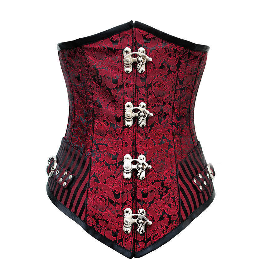 Браун ретро сексуальный баскский готический корсет зашнуровать стали костяком парчи стимпанк корсетные Underbust красный Balck S 2XL купить на AliExpress