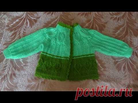 Детский жакет с листиками (спицы) Часть 1 - knitting children's jacket - YouTube
