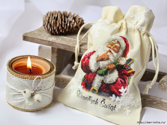 Декупаж на ткани. Мешочек для новогоднего подарка