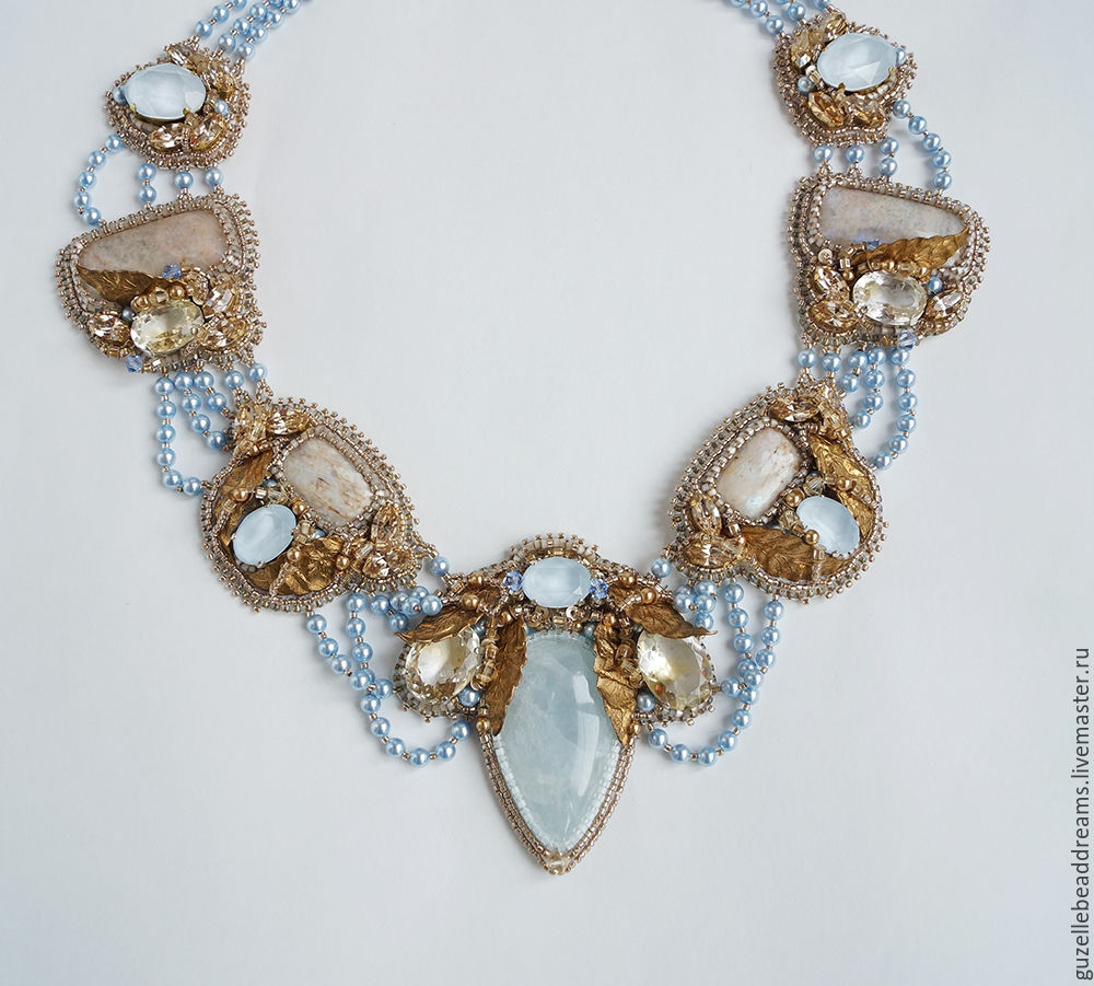 Купить Rovenna - голубой, золотой, светло голубой, нежное украшение, винтаж, голубой кальцит