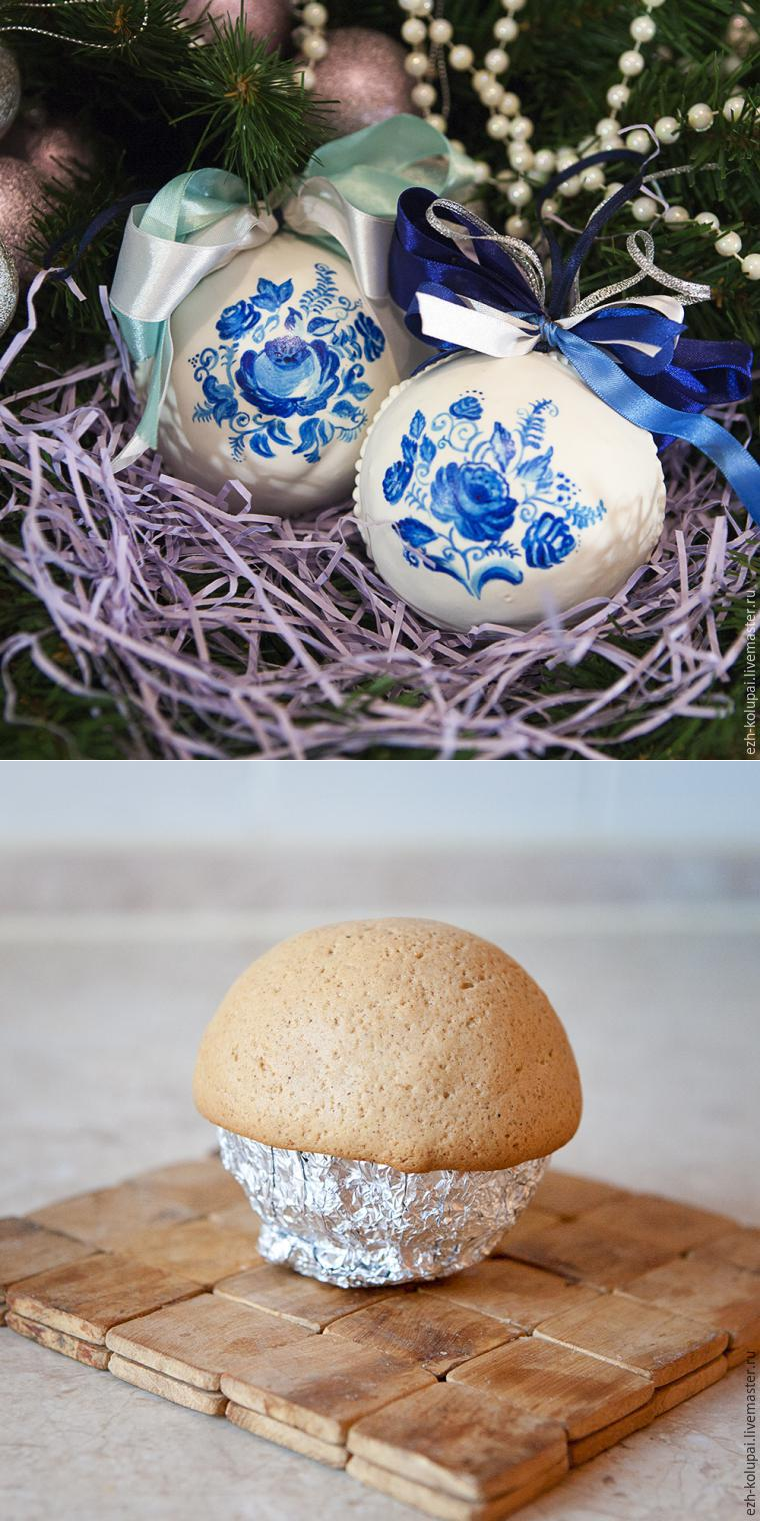 Делаем пряничный новогодний шарик с росписью «Гжель»