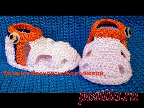 Пинетки крючком сандалики baby booties knitting - YouTube