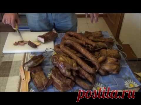 Копчение колбасы , грудинки , цыплят . - YouTube