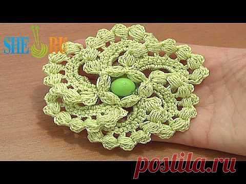 ▶ Цветы крючком Урок 60 часть 1 из 2 Цветок с лепестками из обвитых пышных столбиков - YouTube