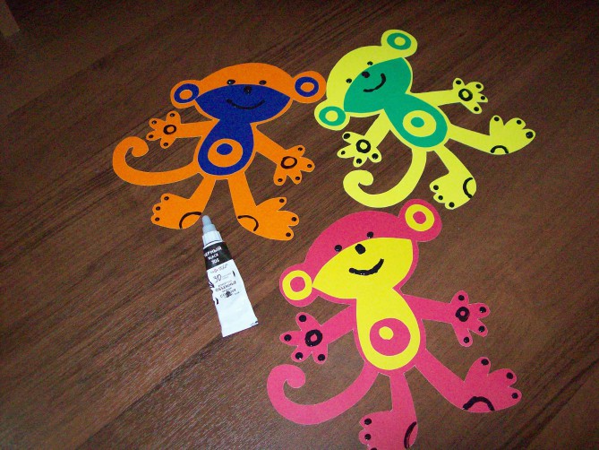 «Радужные обезьянки» мастер-класс поделки из картона в технике объемная аппликация. Шаблон для вырезания - Для воспитателей детских садов - Маам.ру