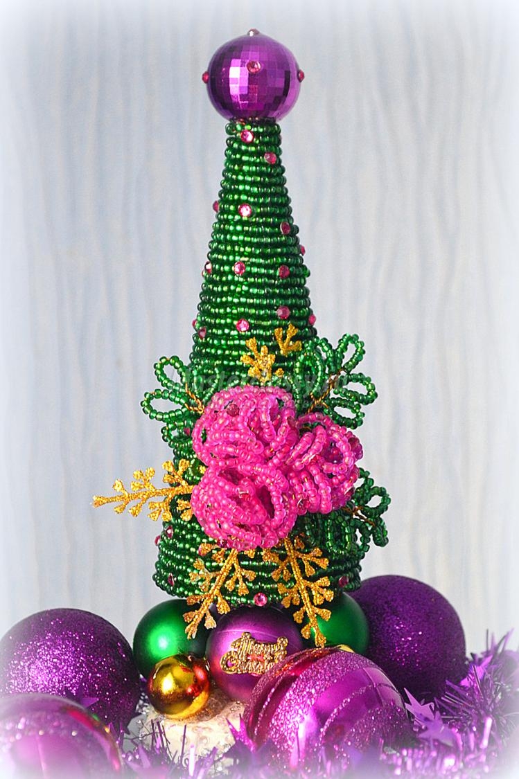 Елочка из бисера с цветами и стразами. Мастер-класс с пошаговыми фото