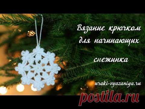 Вязание крючком для начинающих. Как связать снежинку крючком - YouTube