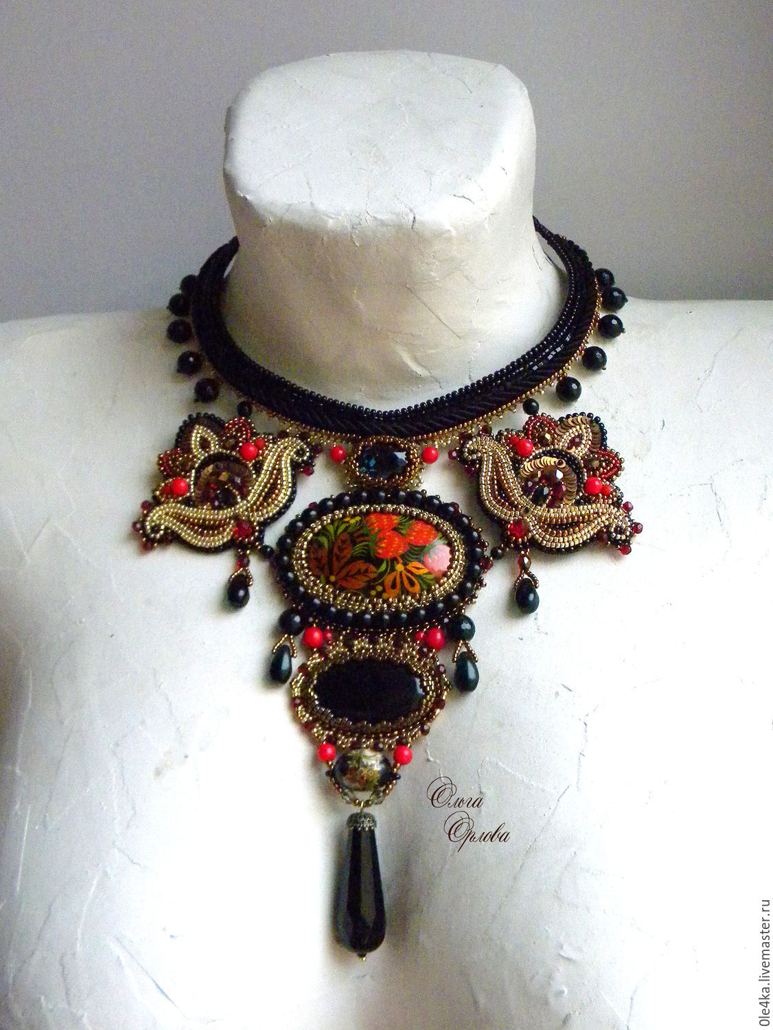 Купить Хохлома - черный, ольга орлова, хохлома, колье в этно стиле, русские узоры
