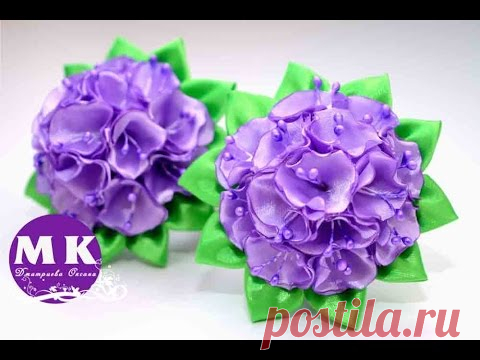 Мастер-класс Канзаши.Цветы Канзаши из атласных лент.Резинка для волос/Scrunchy. Kanzashi flower