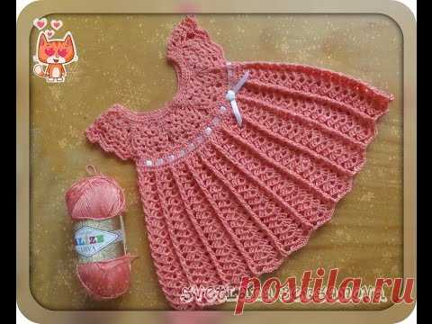 Детское платье крючком с круглой кокеткой. Crochet baby dress