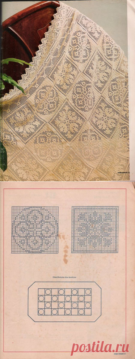 Вязаное филейное покрывало.