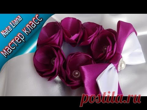 Резинка на пучок с цветами из ленты. Украшение для волос. МК от Nata Liana.
