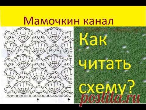 Как читать схемы вязания крючком Узор Веера - YouTube
