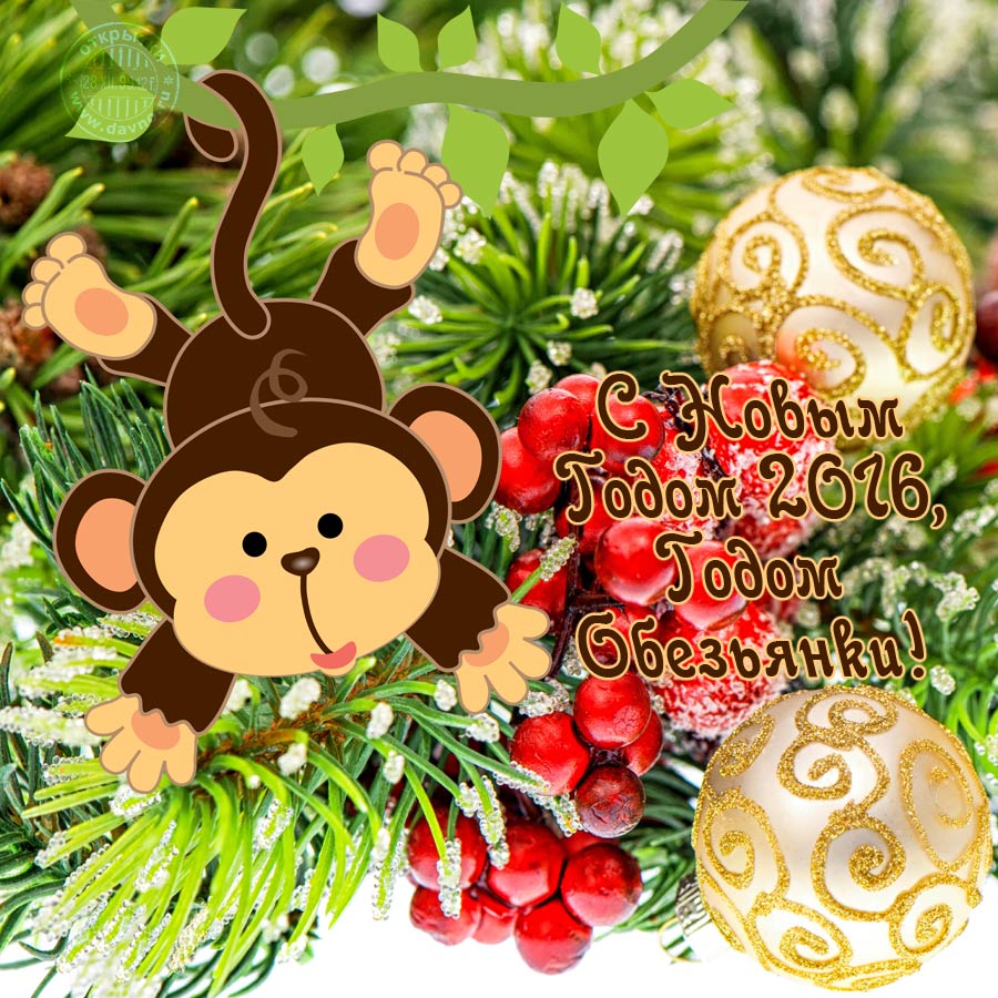 Виртуальные анимационные новогодние открытки с Обезьянами на 2016 год. Прикольные и красивые открытки с Новым годом Обезьяны. [641] | Разное