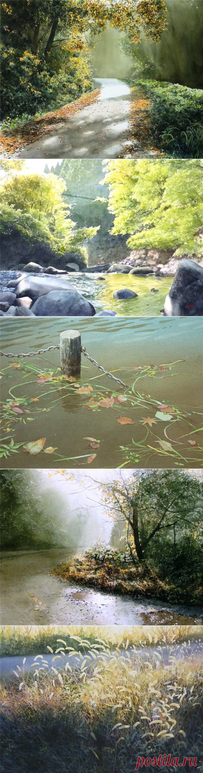 Акварели японского художника Abe Toshiyuki. Времена года. Осень.