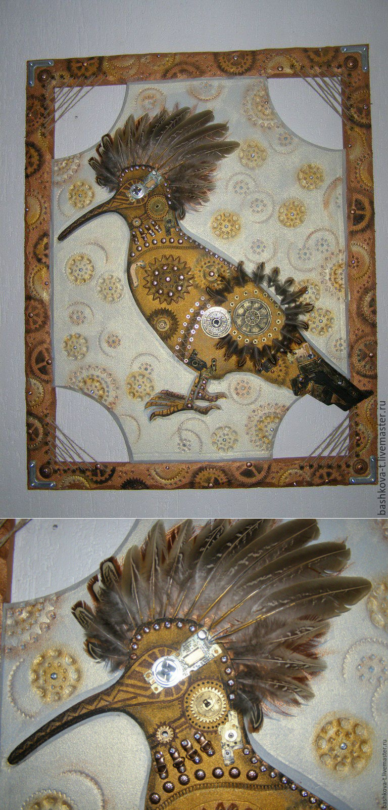 Чудо-птица в стиле Стимпанк - панно, картина, стимпанк, птица, перья, перья