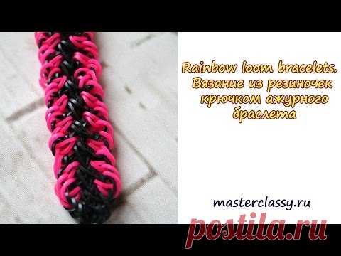 Rainbow loom bracelets. Вязание из резиночек крючком ажурного браслета - YouTube