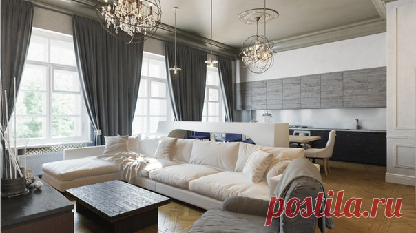 #bestof2015 Проект недели: современная «сталинка» на Пречистенке Серый крашеный потолок с лепниной, отделка санузла микроцементом, черное бархатное изголовье в спальне – эта «сталинка» в Хамовниках максимально далека от скуки и близка к последним модным тенденциям