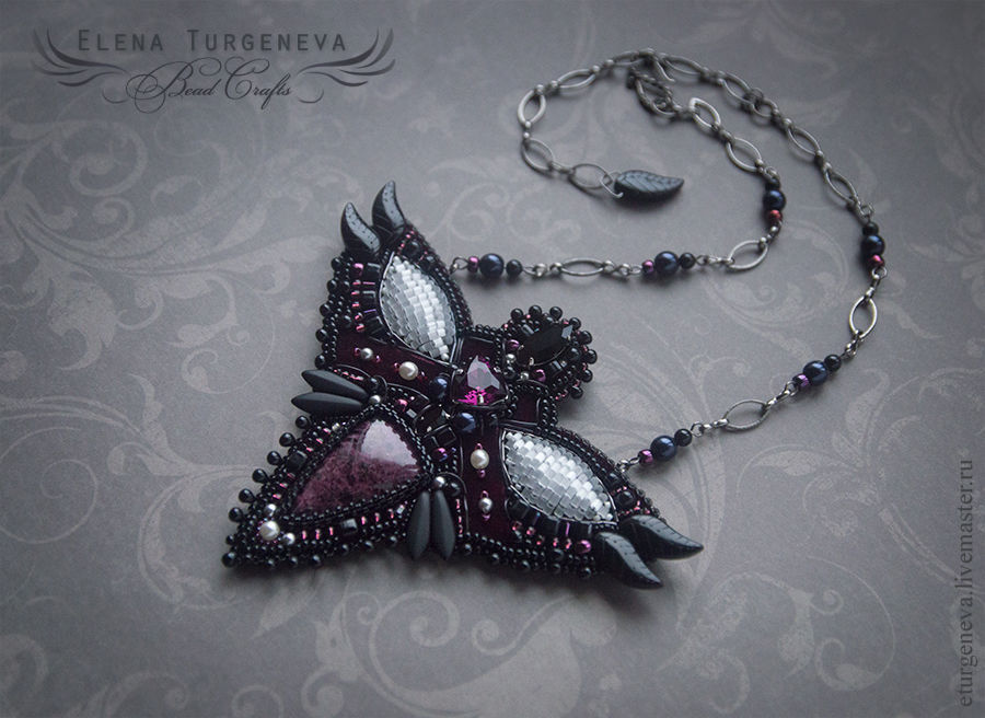 Купить Артефакт Дроу - колье - кулон с эвдиалитом - черный, дроу, фэнтези, фентези, готика, эльфийский