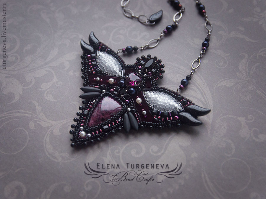 Купить Артефакт Дроу - колье - кулон с эвдиалитом - черный, дроу, фэнтези, фентези, готика, эльфийский