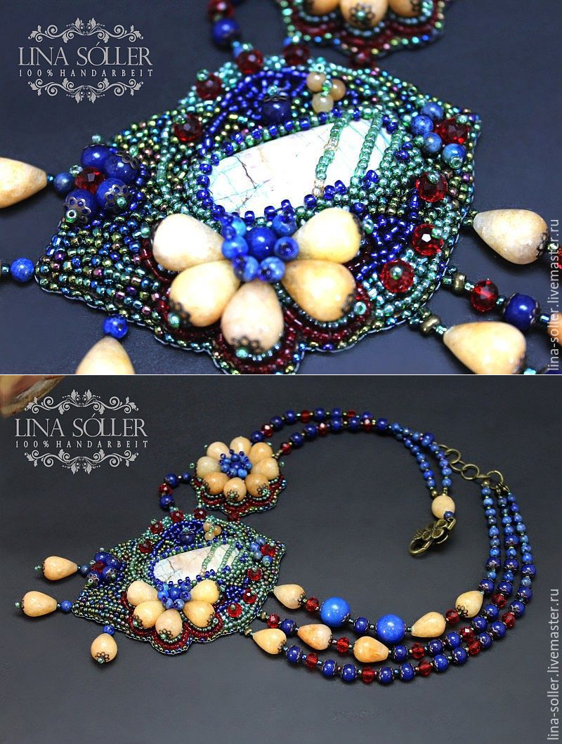 Купить Колье с азуритом - разноцветный, опал, цитрин, вечернее украшение, праздничное украшение, подарок, гематит