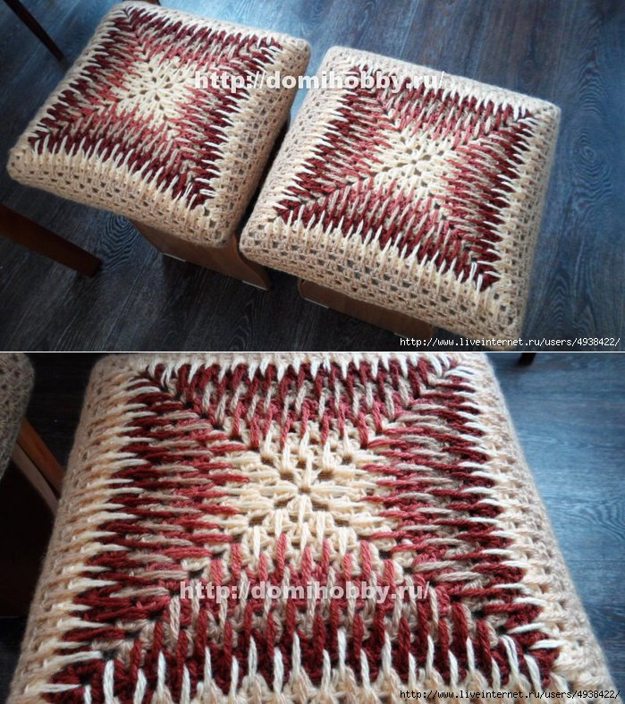 Бабушкин квадрат крючком по-новому. Вяжем красочные чехлы для табуретов, пледы, подушки, коврики