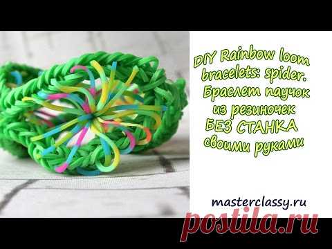 DIY Rainbow loom bracelets: spider. Браслет паучок из резиночек БЕЗ СТАНКА своими руками - YouTube