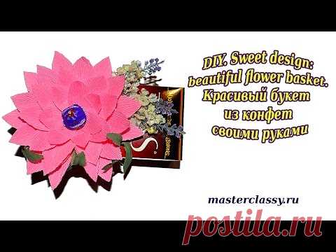 DIY. Sweet design: beautiful flower basket. Красивый букет из конфет своими руками - YouTube