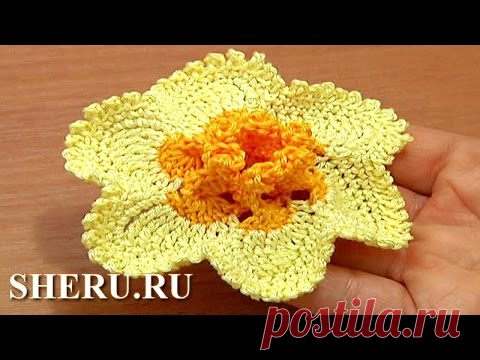 Crochet Narcissus Flower Урок 65 часть 1 из 2 Как вязать нарцисс - YouTube