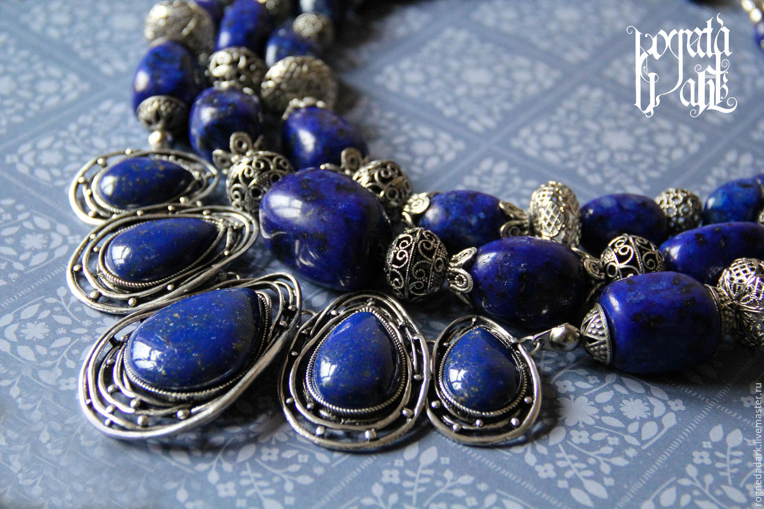 Купить Колье "Небесное" - тёмно-синий, лазурит, лазурит натуральный, лазурит с пиритом, афганский лазурит