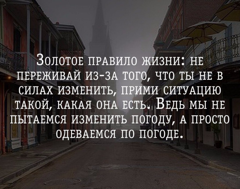 Золотое правило жизни: не переживай из-за того, что ты не в силах изменить, прими ситуацию такой, какая она есть. Ведь мы не пытаемся изменить погоду, а просто одеваемся по погоде | Мир позитивных новостей