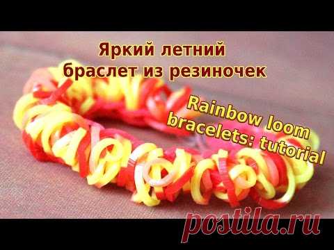 Rainbow loom bracelets: tutorial. Яркий летний браслет "Папуас" из резиночек - YouTube