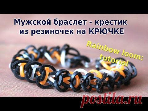 Rainbow loom: tutorial. Мужской браслет - крестик из резиночек на КРЮЧКЕ - YouTube