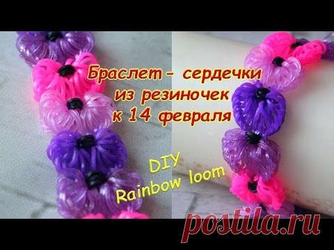 DIY Rainbow loom Valentine's day tutorial. Браслет - сердечки из резиночек к 14 февраля - YouTube
