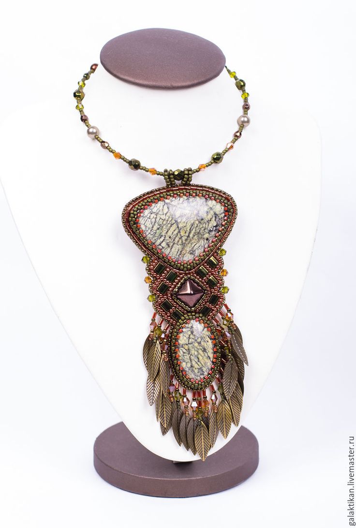 (4) Кулон из комплекта "Учан-Су" - комбинированный, кулон, Кулон ручной работы, натуральный камень | Bead embroidery necklace