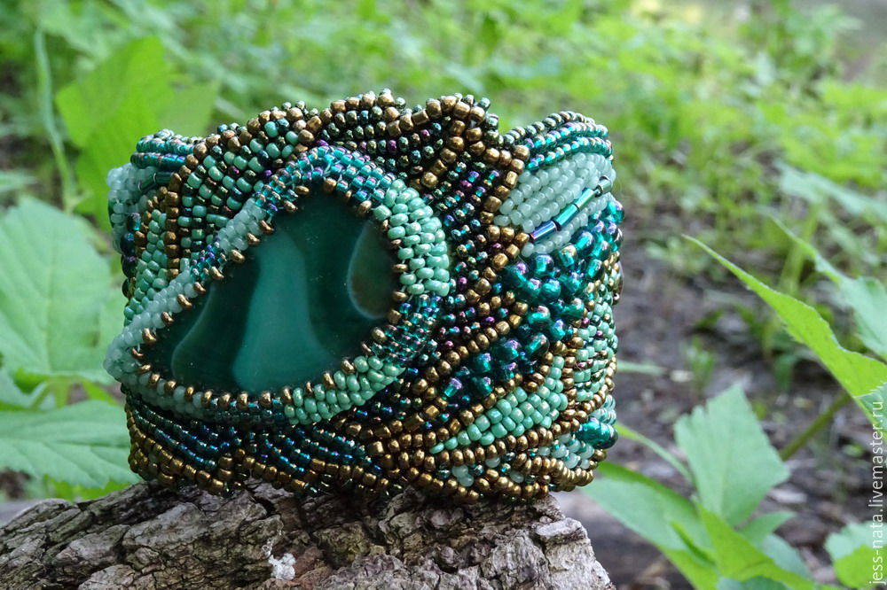 Купить "Сны шамана. Лето" - браслет - тёмно-зелёный, зеленый, морская волна, павлинье перо