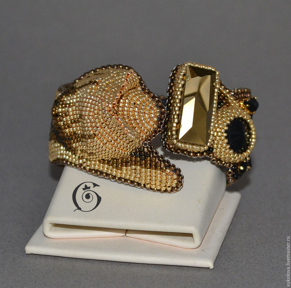 Купить Браслет "L'Amour de l'or" - золотой, черный, браслет, тюльпан, готье, капутт, бисер