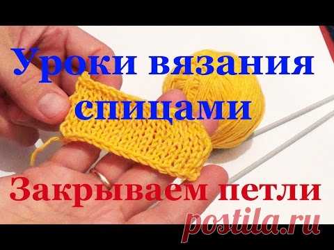 Уроки вязания спицами для начинающих. Закрытие петель - YouTube