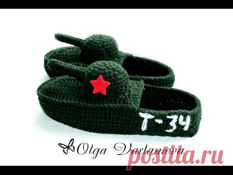 МК Тапочки для мужчин крючком - ТАНКИ (2 Часть)
