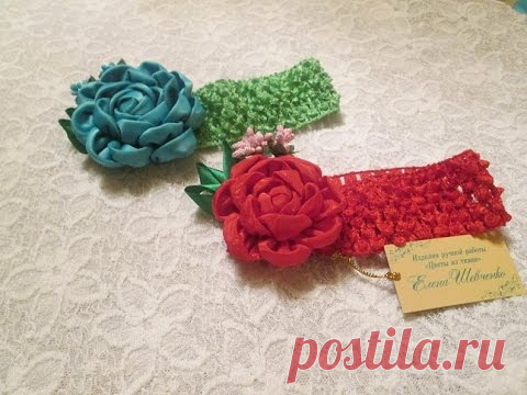 Повязка на голову для девочки своими руками / Цветы из ткани / Елена Шевченко /