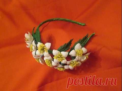 Как сделать ободок с цветами / Жасмин /1 часть / Цветы из ткани своими руками / Елена Шевченко.