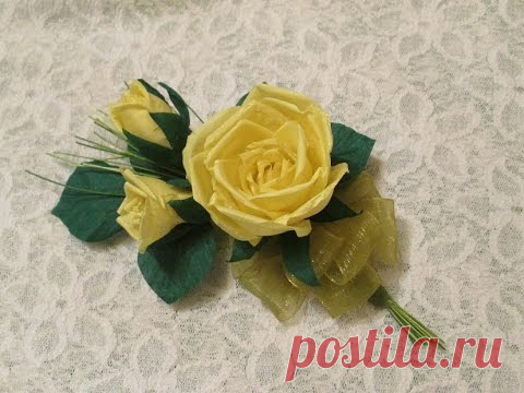 Бутоньерка для жениха.Сборка букета.2 часть мастер класса. Цветы из ткани. Елена Шевченко .